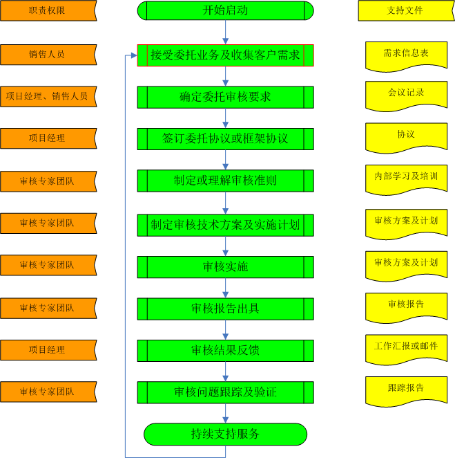 委托審核基于天奇億(北京)管理咨詢有限公司的專業(yè)能力以及客戶的認(rèn)可信任,公司愿意為客戶提供委托內(nèi)部審核服務(wù)以及委托對(duì)客戶的供方進(jìn)行審核服務(wù),并提供相應(yīng)的服務(wù)報(bào)告和改進(jìn)建議;根據(jù)客戶的要求我們也愿意提供后續(xù)的跟蹤及驗(yàn)證支持。從第三方視角去發(fā)現(xiàn)不容易發(fā)現(xiàn)的問題,進(jìn)而提升客戶管理水平,降低客戶的風(fēng)險(xiǎn)。流程如下: